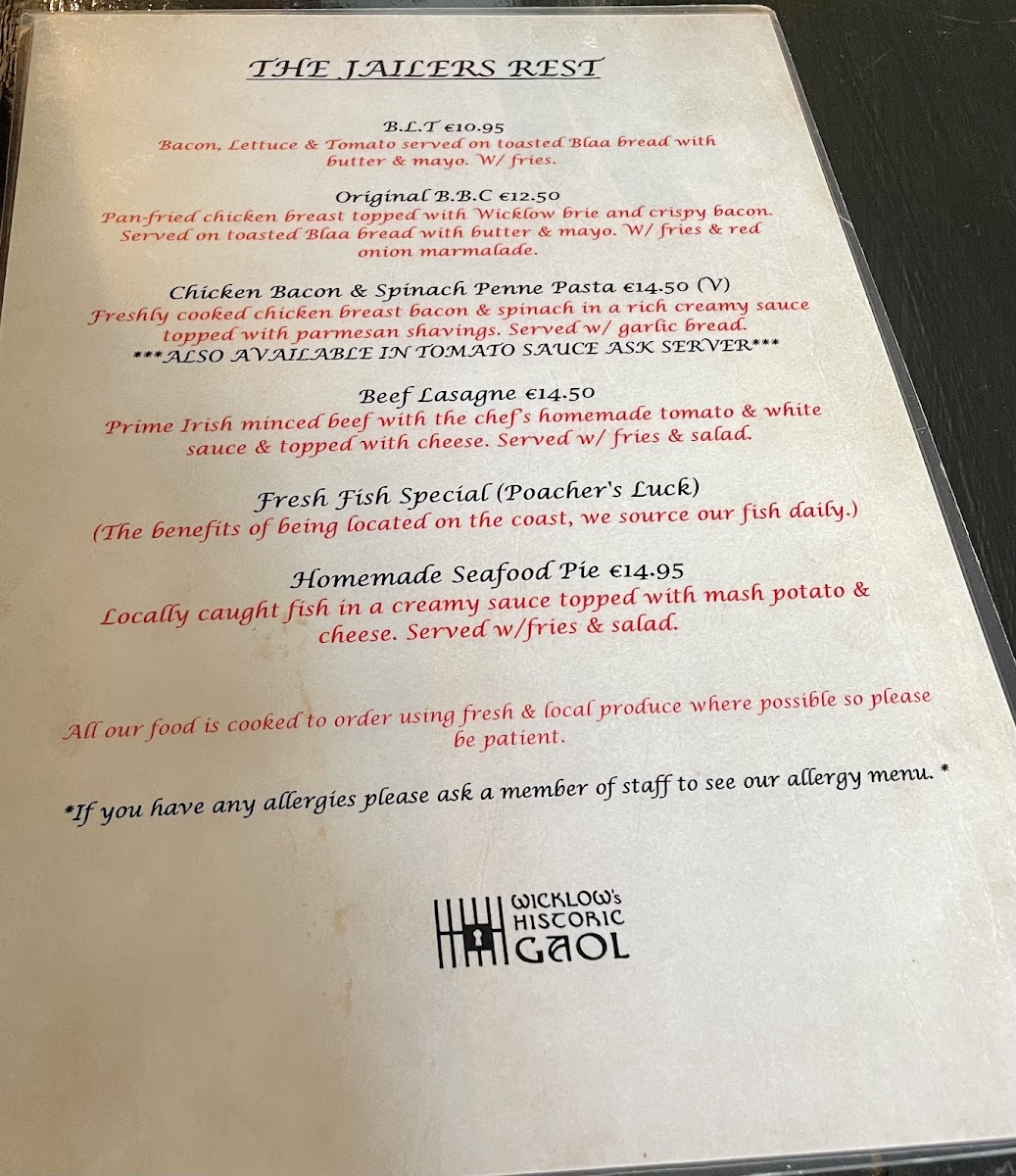 Welcome to The Jailers Rest in Wicklow, where history meets hearty fare. Nestled on Gaol Ln, this charming eatery presents a menu aimed at both locals and travelers seeking a true taste of Ireland.